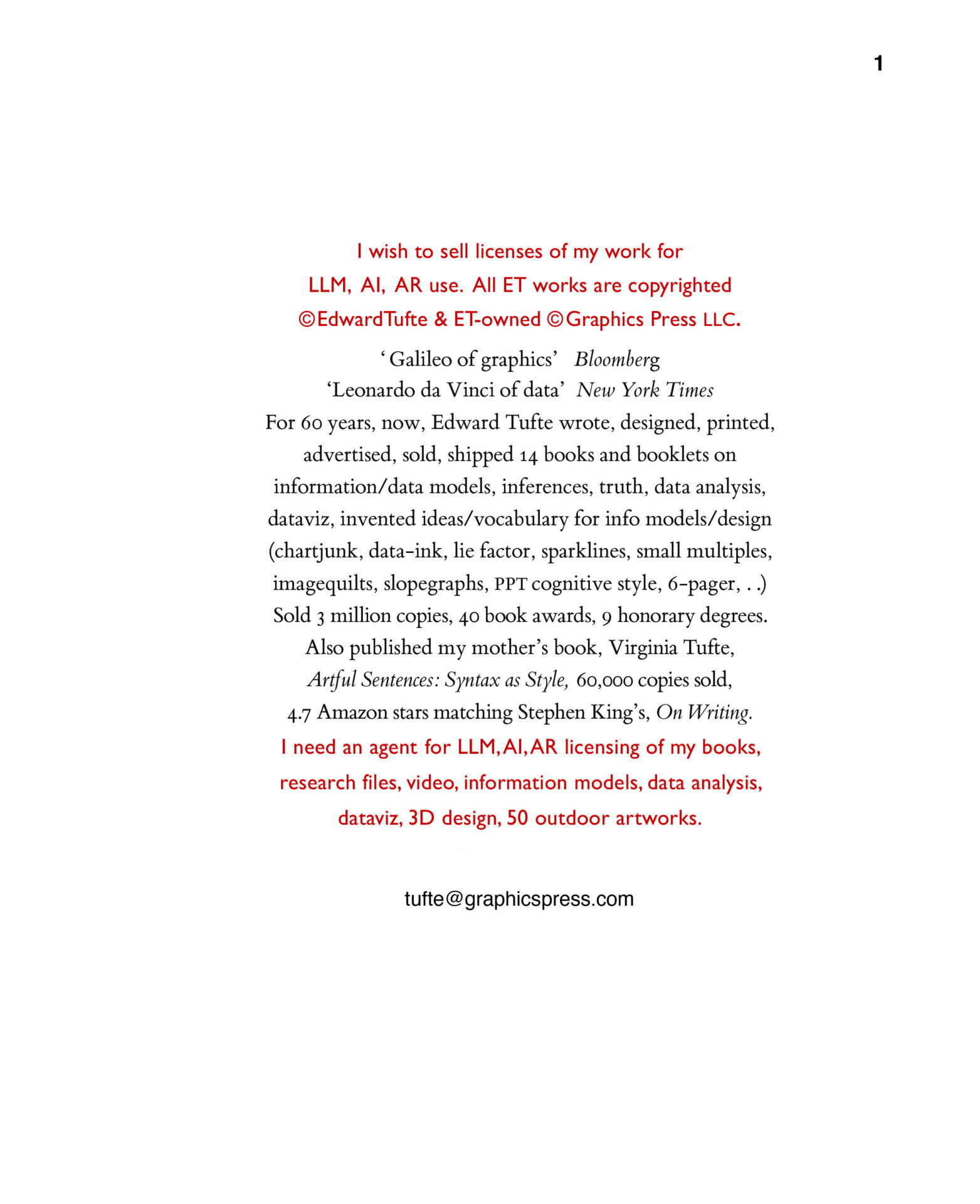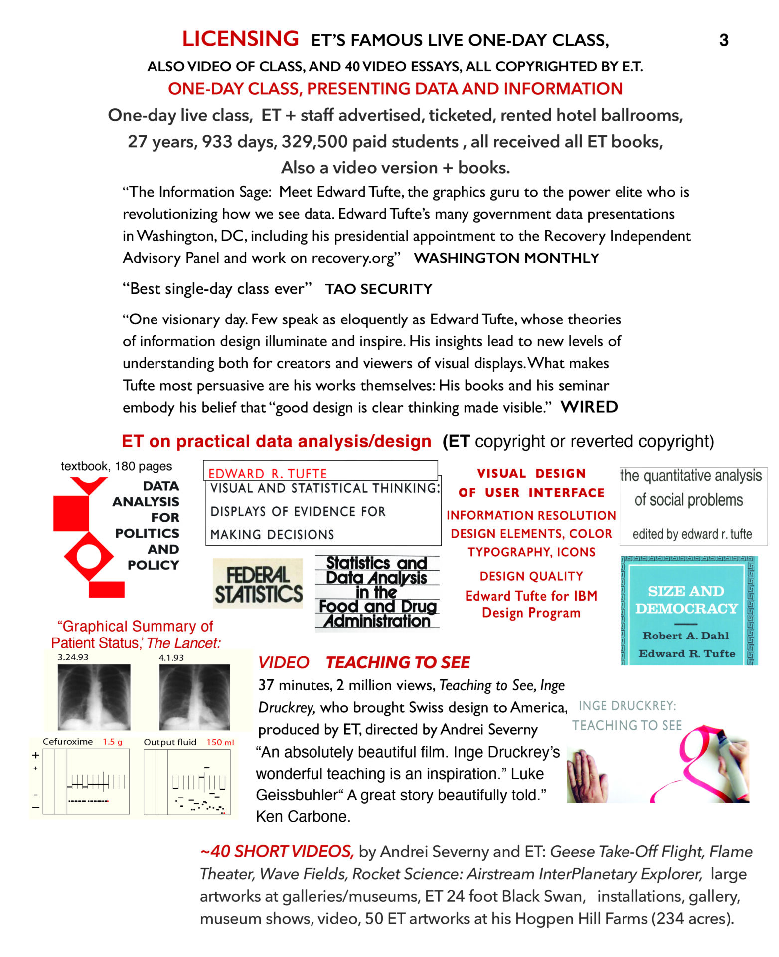 ALL EDWARD TUFTE’S WORK AND MASSIVE RESEARCH FILES, ALL COPYRIGHTED, SELF-PUBLISHED, OWNED BY EDWARD TUFTE