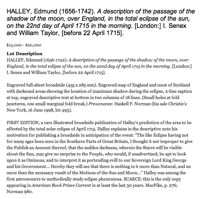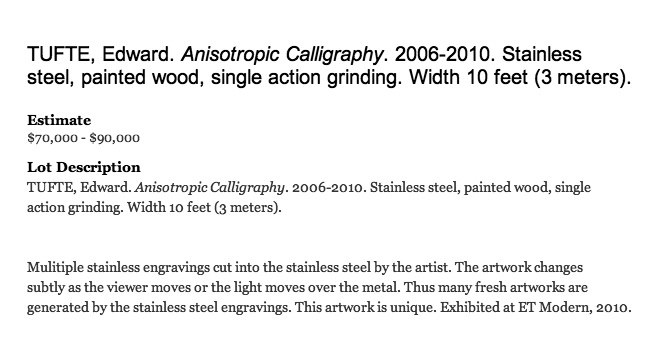 “Beautiful Evidence: The Library of Edward Tufte,” auction at Christie’s, Rockefeller Center, New York City, December 2, 2010. About 200 rare books, including major works in the history of science, statistical graphics, 20th-century artists books, ET artworks, Sidereus Nuncius (1610), Hypnerotomachia Poliphili (1499).