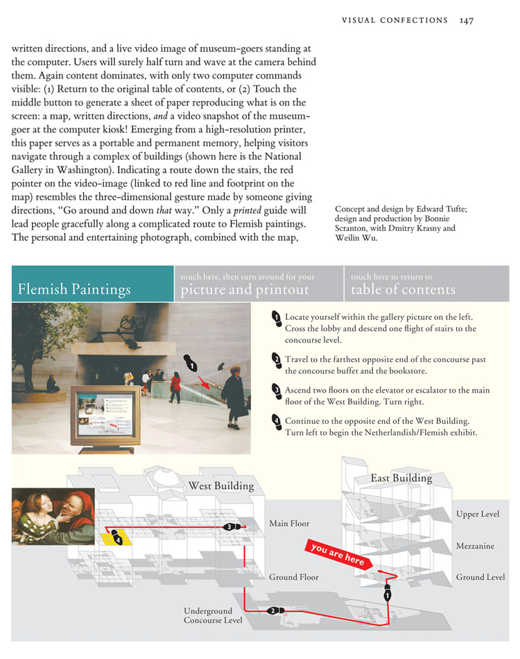 Here are pages 146-150 from my book Visual Explanations (1997) that describe the National Gallery proposal and then suggest general principles of interface design.