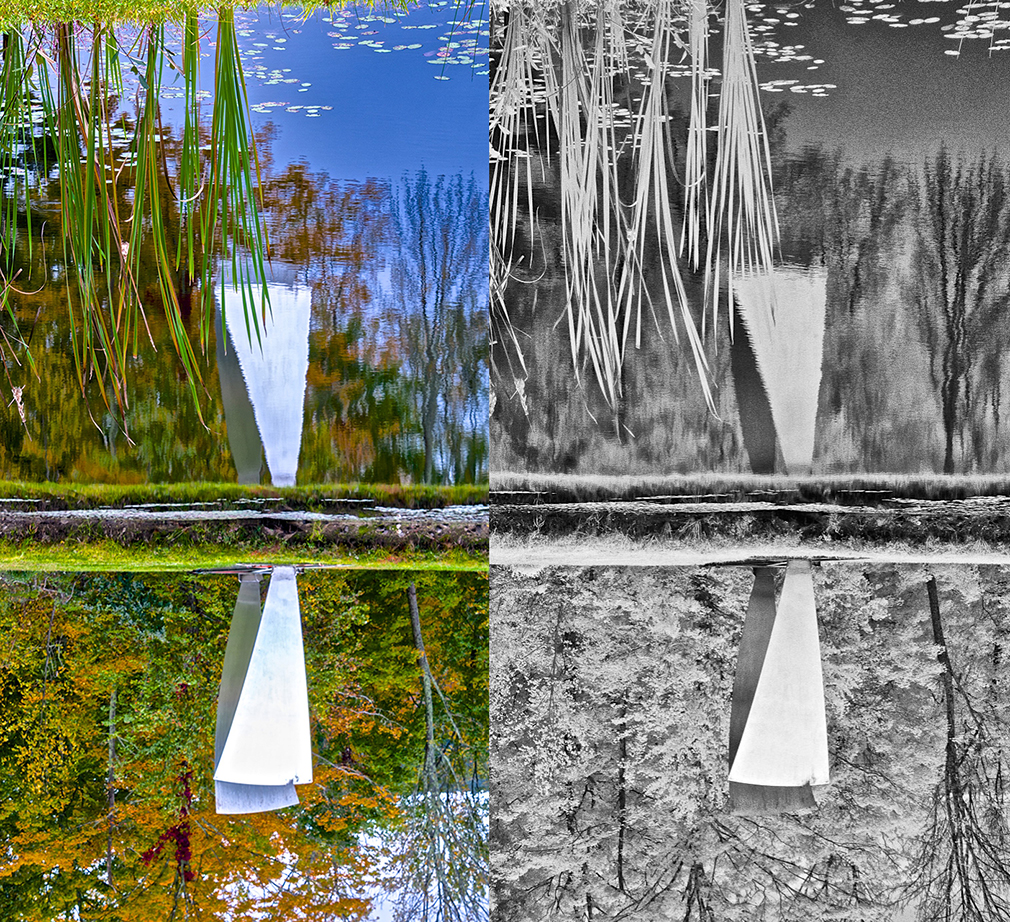 Saturated-color/infrared images adjacent, then rotated upside down: