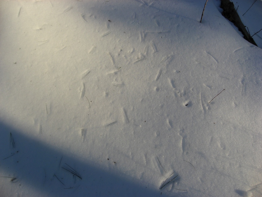 Sometimes nature also gives us a beautiful reverse effect, caused by drop in temperature and increased wind. The more icy imprints of the needles (or other object) will not erode as fast as the unblemished snow, turning negative into positive. But that is probably for another thread …