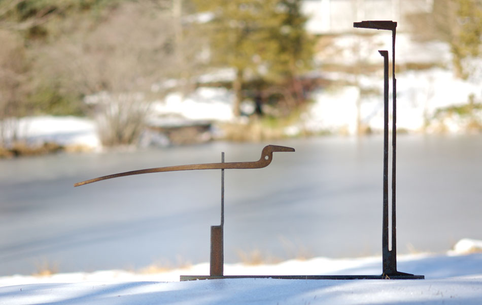 I like scrap metal–selected scrap metal–because it is different, new, intriguing, available, inexpensive. It refreshes my vocabulary for making artworks. It is nostalgic when scrap, but not so in artwork. One initial element, the tong, then led to making and combining the other 3 elements to construct my Tong Bird of Paradise.