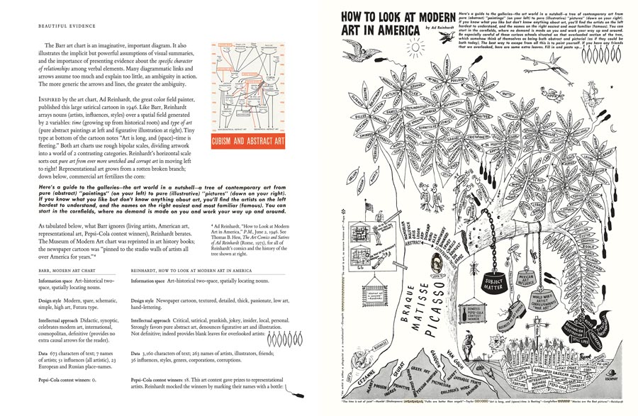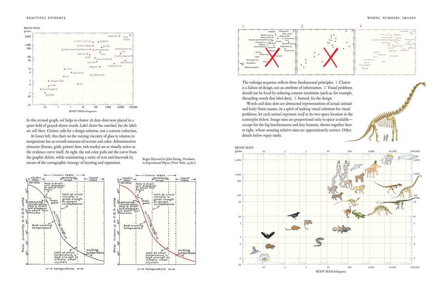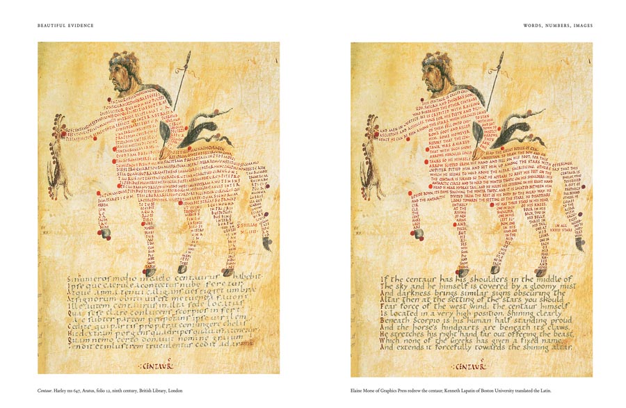 Prints based on images from Beautiful Evidence (2006), Envisioning Information (1990), and Visual Explanations (1997).